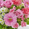 Чарующее сочетание благородных роз, выразительных гербер, нежных гвоздик розового оттенка и белых ромашковых хризантем подойдет для вручения не только отдельному человеку, но и паре. Шикарный букет подчеркнет значимость даты – свадьбы, дня рождения, юбилея.